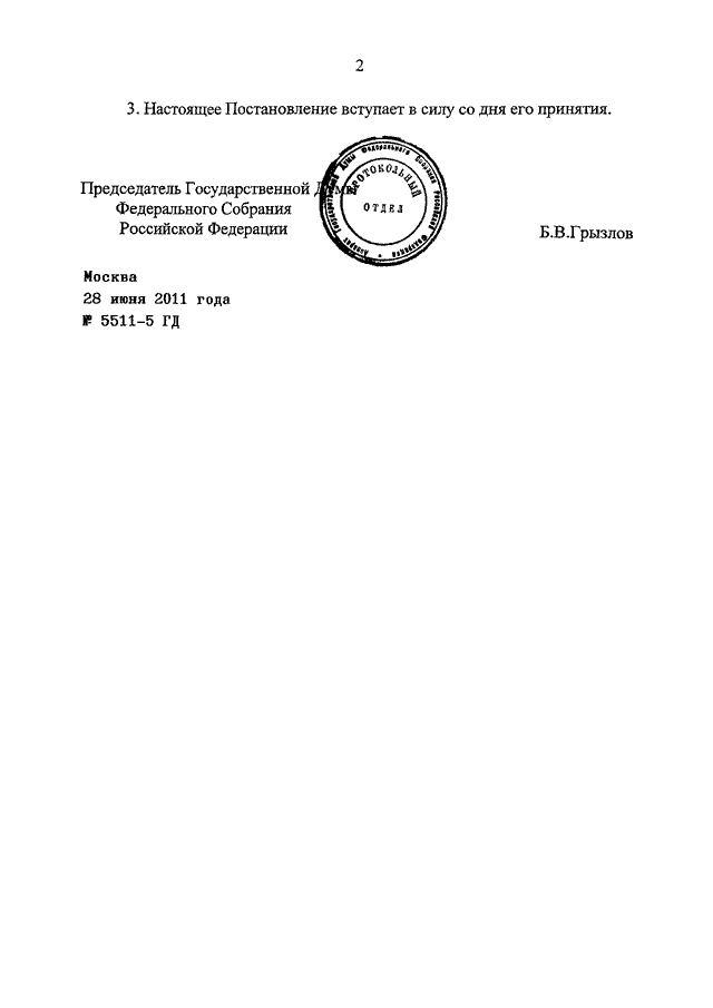 ПОСТАНОВЛЕНИЕ ГД ФС РФ от 28.06.2011 N 5511-5 ГД
