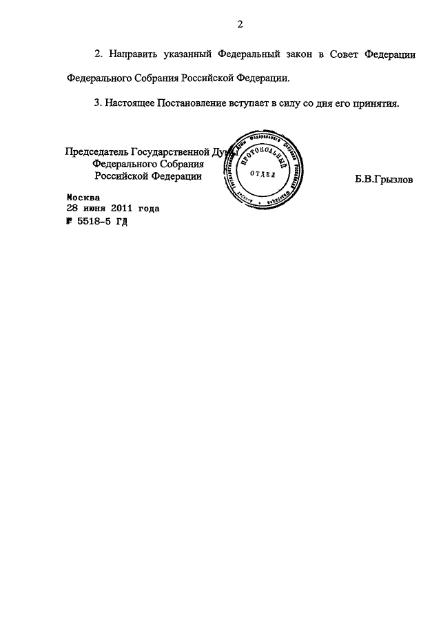 ПОСТАНОВЛЕНИЕ ГД ФС РФ от 28.06.2011 N 5518-5 ГД