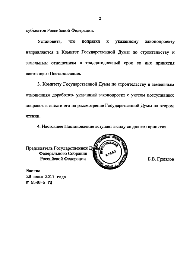 ПОСТАНОВЛЕНИЕ ГД ФС РФ от 29.06.2011 N 5546-5 ГД