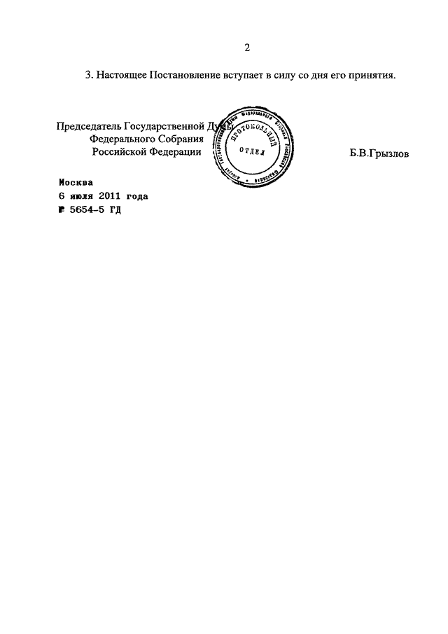 ПОСТАНОВЛЕНИЕ ГД ФС РФ от 06.07.2011 N 5654-5 ГД