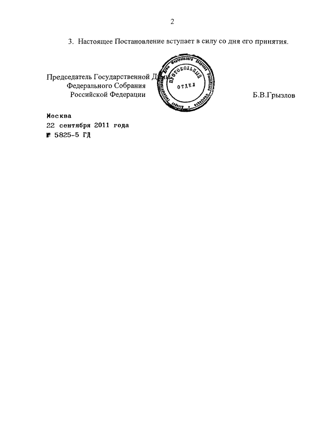 ПОСТАНОВЛЕНИЕ ГД ФС РФ от 22.09.2011 N 5825-5 ГД