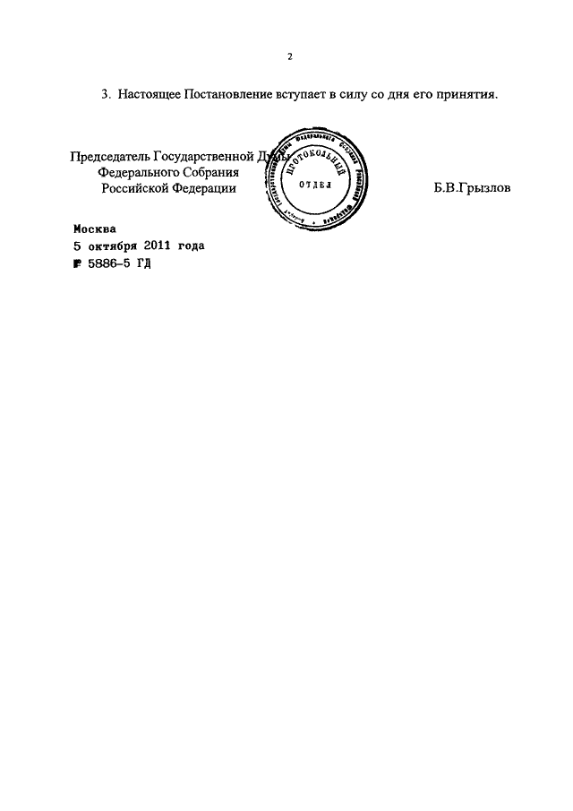 ПОСТАНОВЛЕНИЕ ГД ФС РФ от 05.10.2011 N 5886-5 ГД