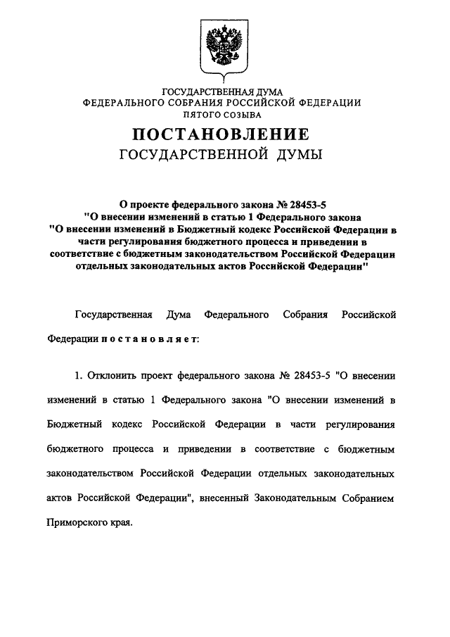 "О ПРОЕКТЕ ФЕДЕРАЛЬНОГО ЗАКОНА N 28453-5 "О ВНЕСЕНИИ ИЗМЕНЕНИЙ В