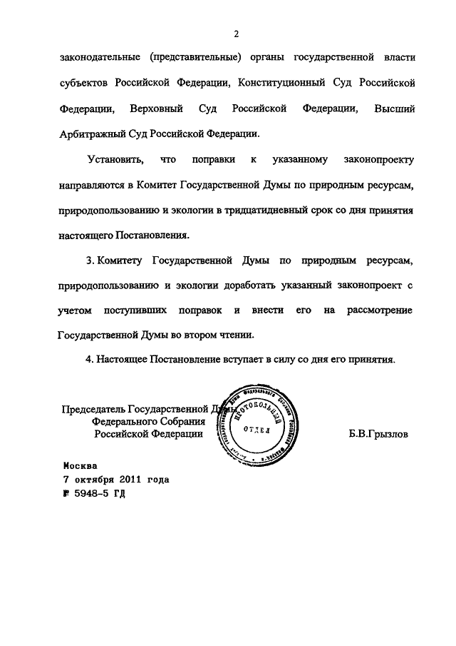 ПОСТАНОВЛЕНИЕ ГД ФС РФ от 07.10.2011 N 5948-5 ГД