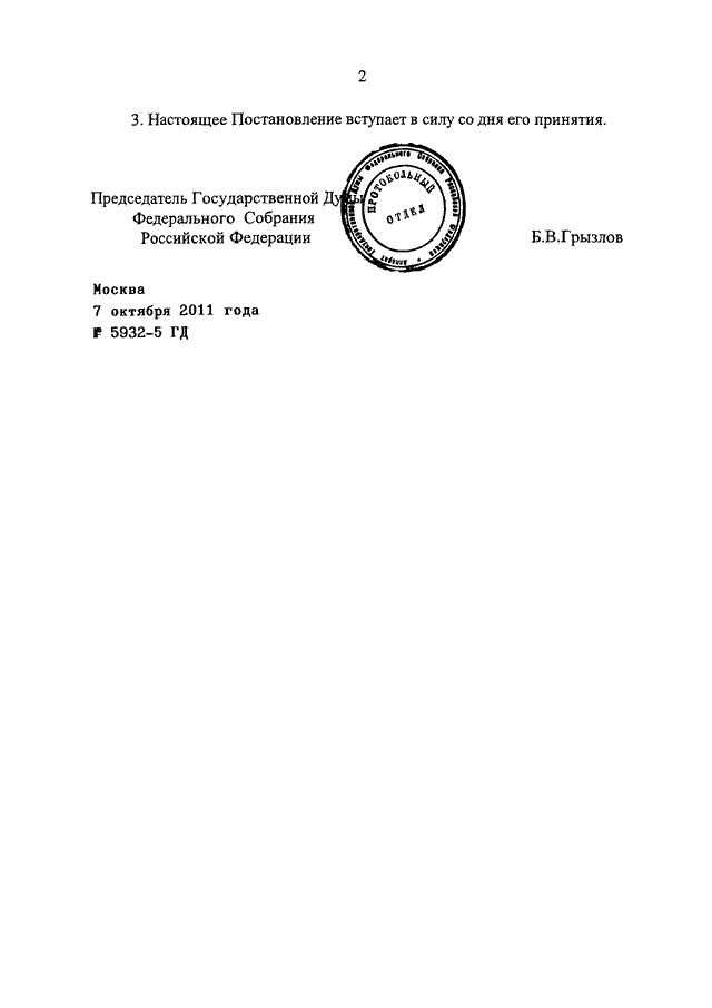 ПОСТАНОВЛЕНИЕ ГД ФС РФ от 07.10.2011 N 5932-5 ГД
