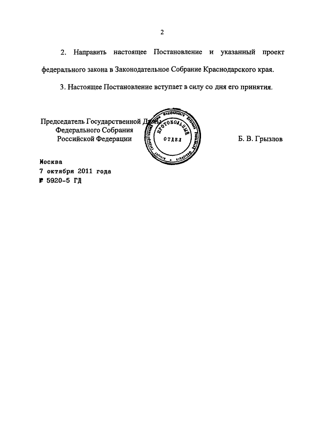 ПОСТАНОВЛЕНИЕ ГД ФС РФ от 07.10.2011 N 5920-5 ГД