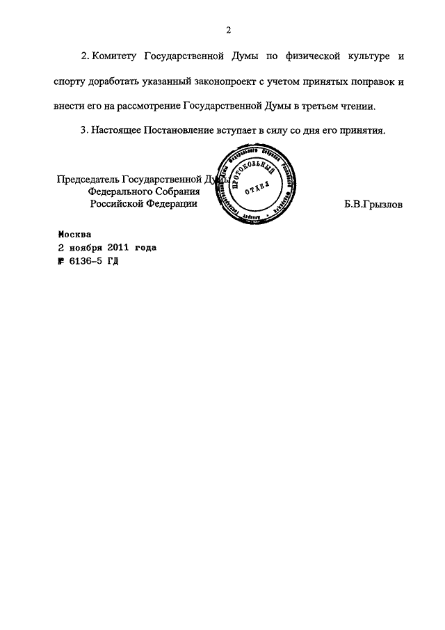 ПОСТАНОВЛЕНИЕ ГД ФС РФ от 02.11.2011 N 6136-5 ГД