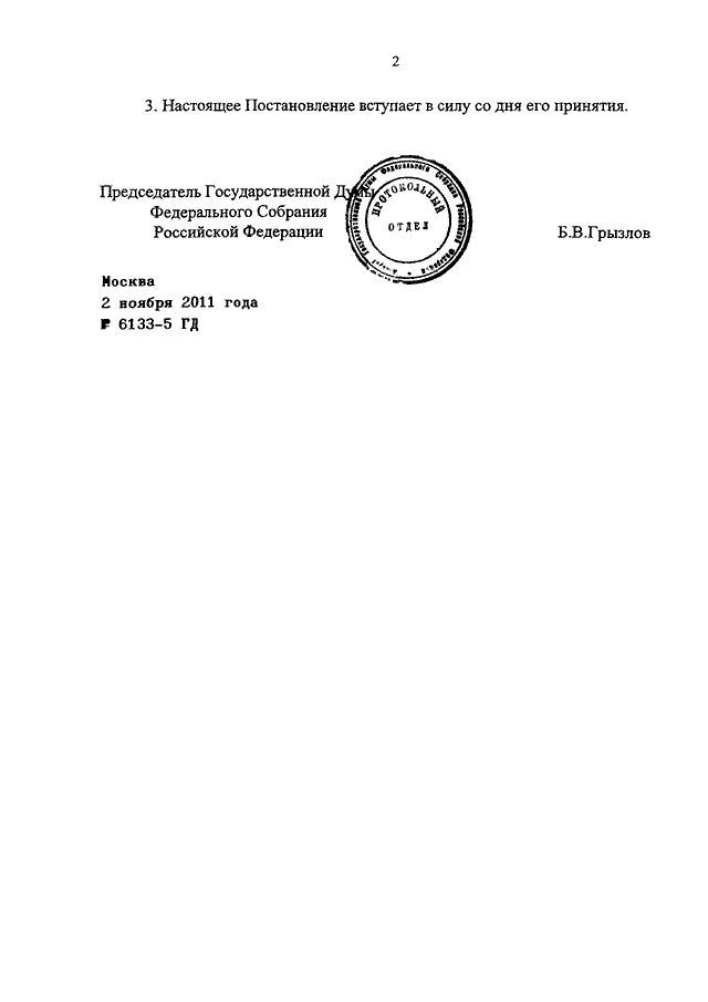 ПОСТАНОВЛЕНИЕ ГД ФС РФ от 02.11.2011 N 6133-5 ГД