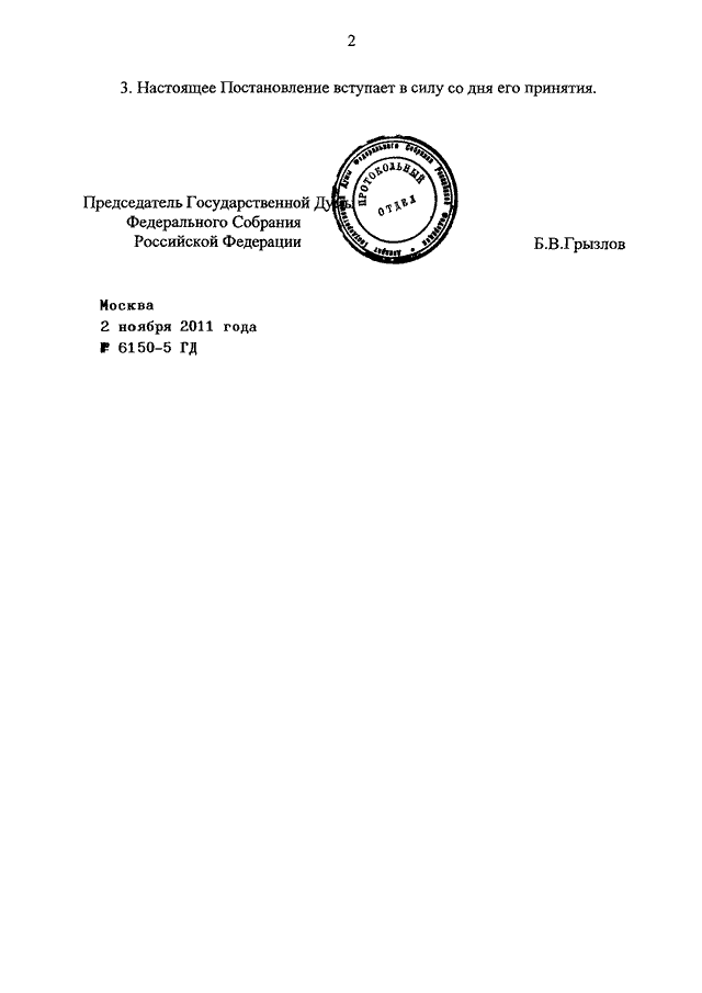 ПОСТАНОВЛЕНИЕ ГД ФС РФ от 02.11.2011 N 6150-5 ГД