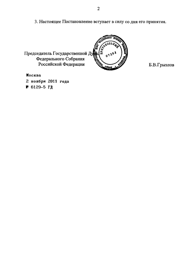ПОСТАНОВЛЕНИЕ ГД ФС РФ от 02.11.2011 N 6129-5 ГД