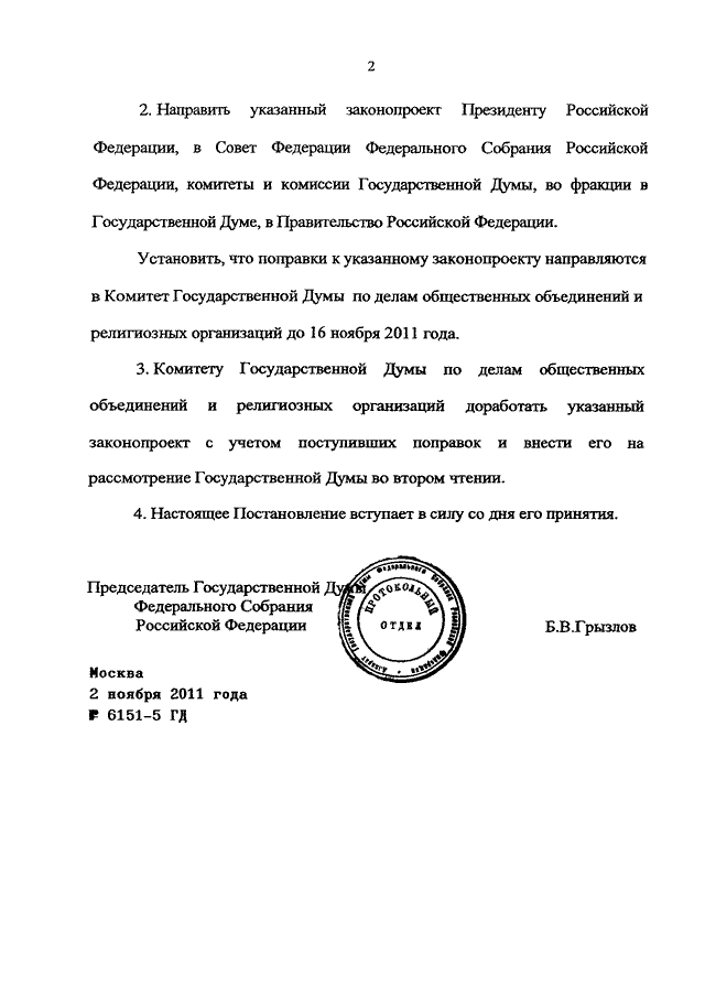 ПОСТАНОВЛЕНИЕ ГД ФС РФ от 02.11.2011 N 6151-5 ГД
