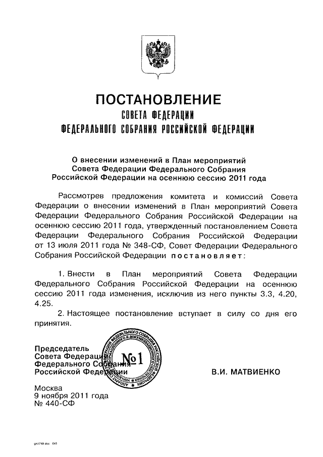 ПОСТАНОВЛЕНИЕ СФ ФС РФ от 09.11.2011 N 440-СФ