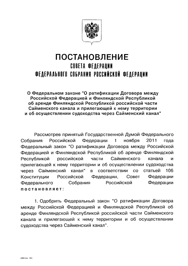 ПОСТАНОВЛЕНИЕ СФ ФС РФ от 09.11.2011 N 416-СФ