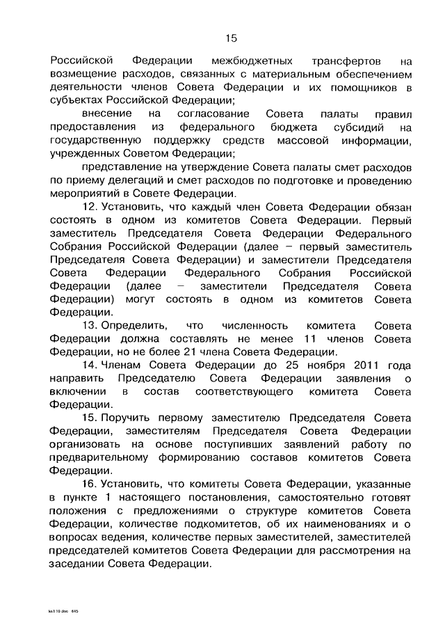 "О КОМИТЕТАХ СОВЕТА ФЕДЕРАЦИИ ФЕДЕРАЛЬНОГО СОБРАНИЯ РОССИЙСКОЙ ФЕДЕРАЦИИ"