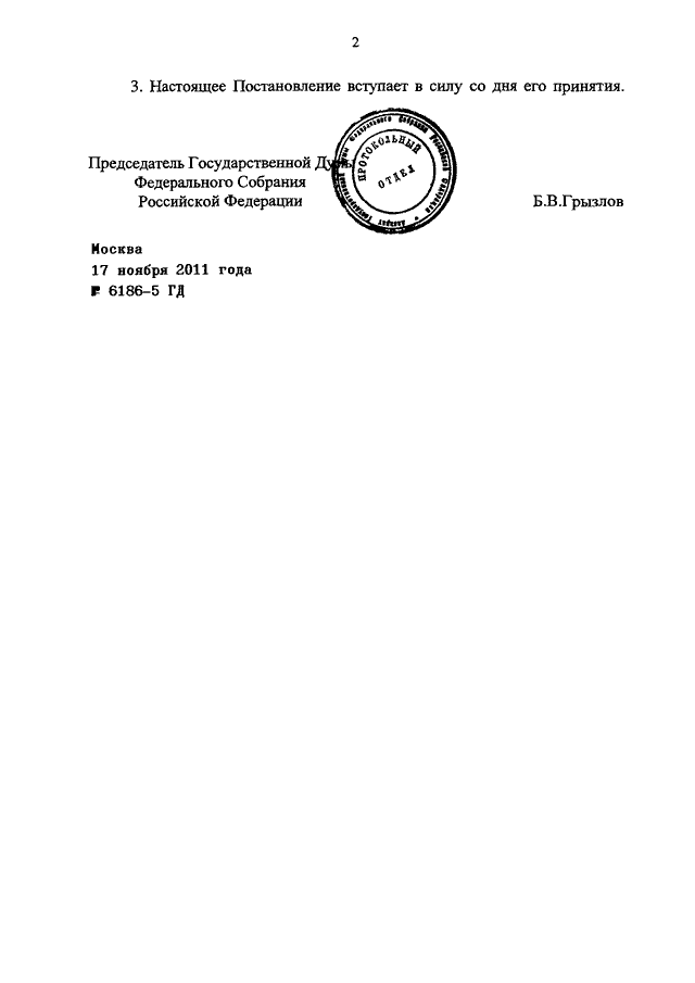 ПОСТАНОВЛЕНИЕ ГД ФС РФ от 17.11.2011 N 6186-5 ГД