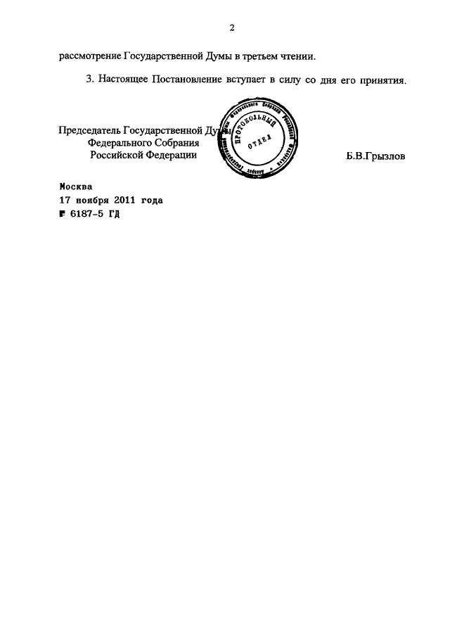 ПОСТАНОВЛЕНИЕ ГД ФС РФ от 17.11.2011 N 6187-5 ГД