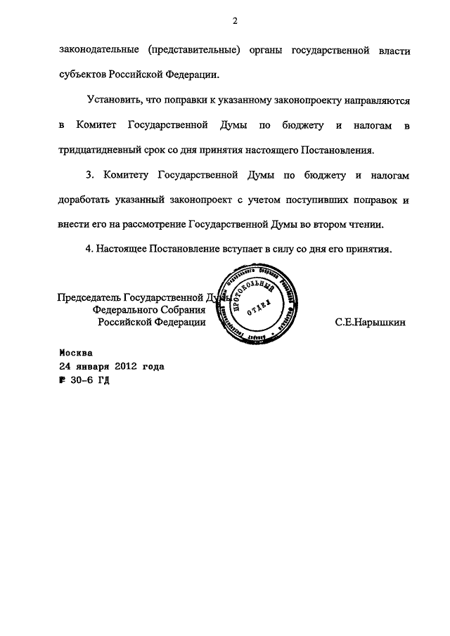 ПОСТАНОВЛЕНИЕ ГД ФС РФ от 24.01.2012 N 30-6 ГД