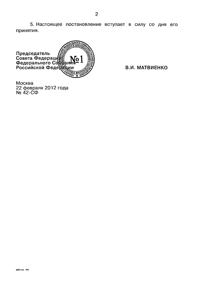 ПОСТАНОВЛЕНИЕ СФ ФС РФ от 22.02.2012 N 42-СФ