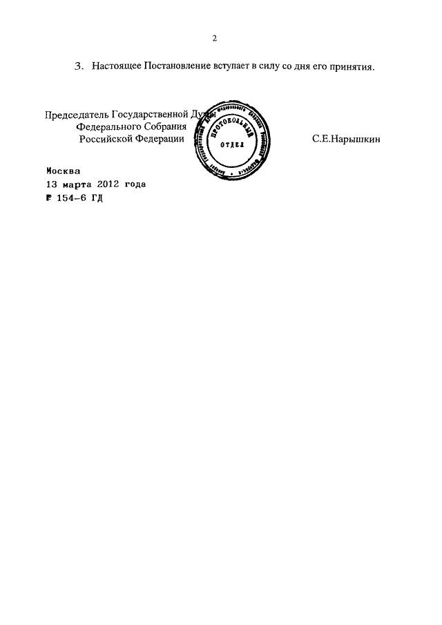 ПОСТАНОВЛЕНИЕ ГД ФС РФ от 13.03.2012 N 154-6 ГД