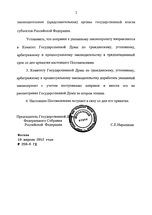 ПОСТАНОВЛЕНИЕ ГД ФС РФ от 10.04.2012 N 259-6 ГД