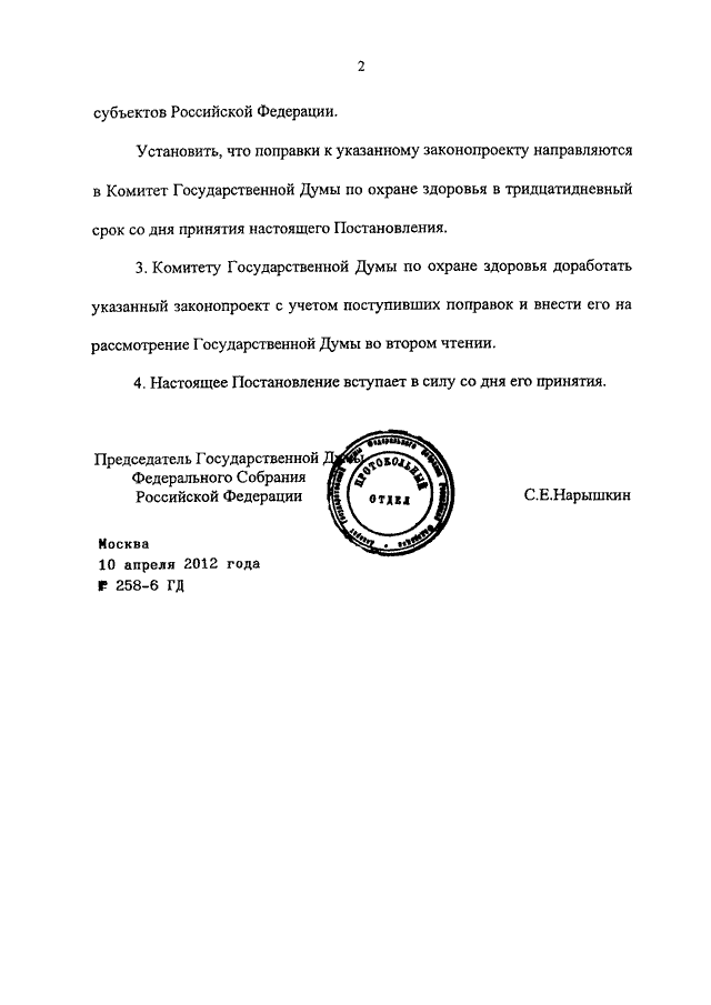 ПОСТАНОВЛЕНИЕ ГД ФС РФ от 10.04.2012 N 258-6 ГД