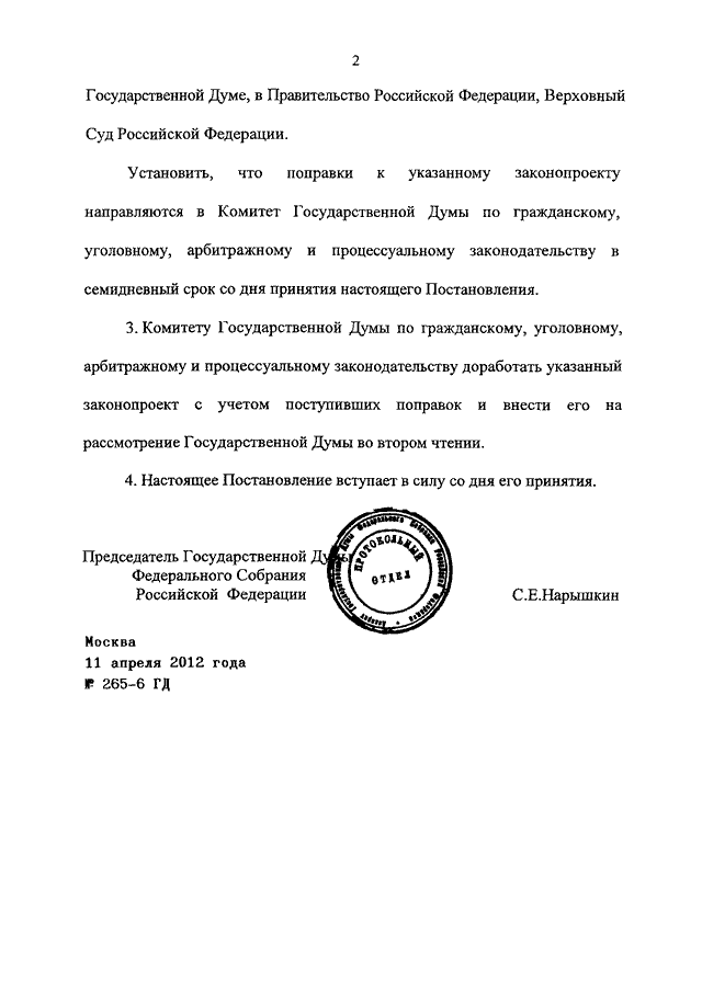 ПОСТАНОВЛЕНИЕ ГД ФС РФ от 11.04.2012 N 265-6 ГД
