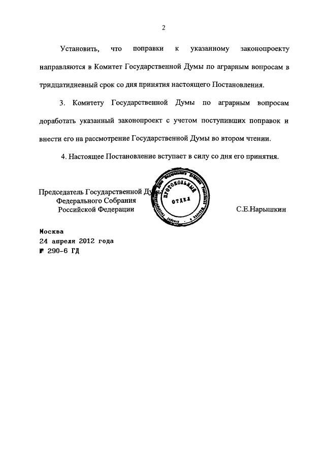 ПОСТАНОВЛЕНИЕ ГД ФС РФ от 24.04.2012 N 290-6 ГД
