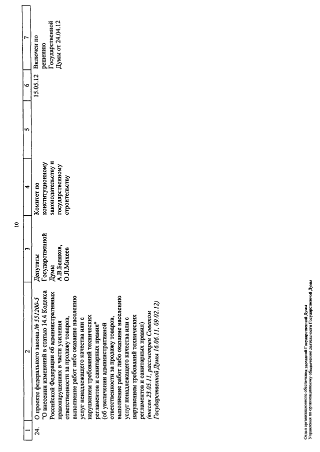 "О КАЛЕНДАРЕ РАССМОТРЕНИЯ ВОПРОСОВ ГОСУДАРСТВЕННОЙ ДУМОЙ С 15 ПО 25 МАЯ 2012 ГОДА"