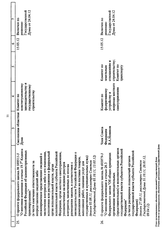 "О КАЛЕНДАРЕ РАССМОТРЕНИЯ ВОПРОСОВ ГОСУДАРСТВЕННОЙ ДУМОЙ С 15 ПО 25 МАЯ 2012 ГОДА"