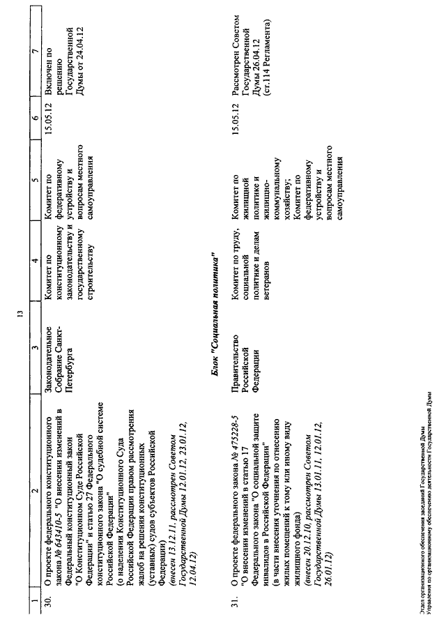 "О КАЛЕНДАРЕ РАССМОТРЕНИЯ ВОПРОСОВ ГОСУДАРСТВЕННОЙ ДУМОЙ С 15 ПО 25 МАЯ 2012 ГОДА"