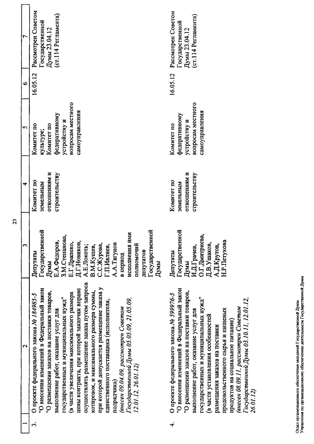 "О КАЛЕНДАРЕ РАССМОТРЕНИЯ ВОПРОСОВ ГОСУДАРСТВЕННОЙ ДУМОЙ С 15 ПО 25 МАЯ 2012 ГОДА"