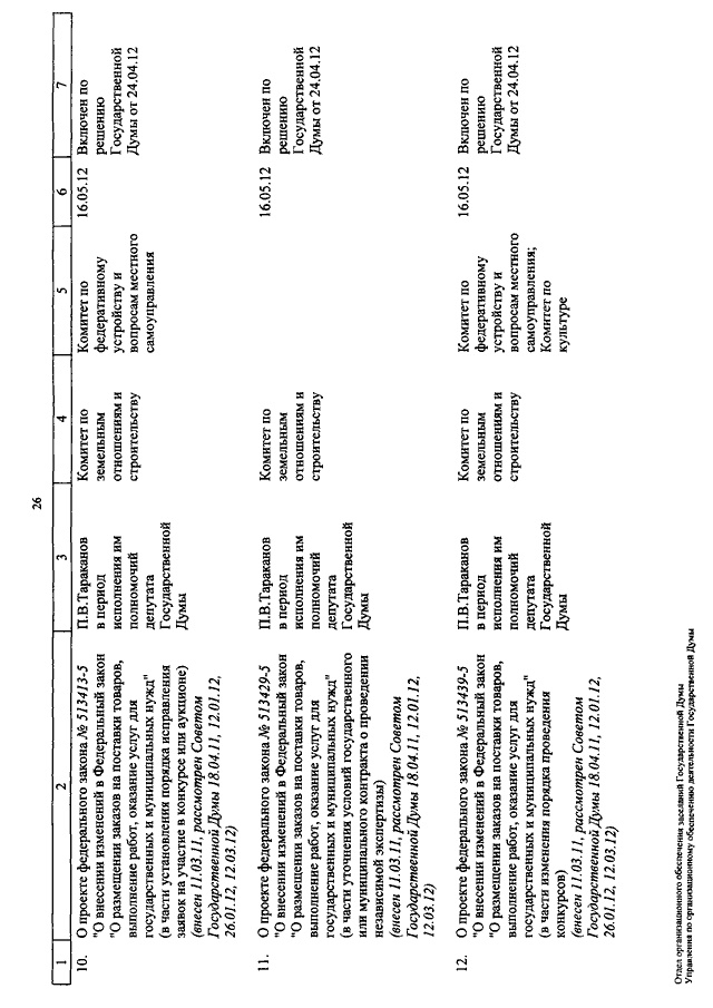 "О КАЛЕНДАРЕ РАССМОТРЕНИЯ ВОПРОСОВ ГОСУДАРСТВЕННОЙ ДУМОЙ С 15 ПО 25 МАЯ 2012 ГОДА"