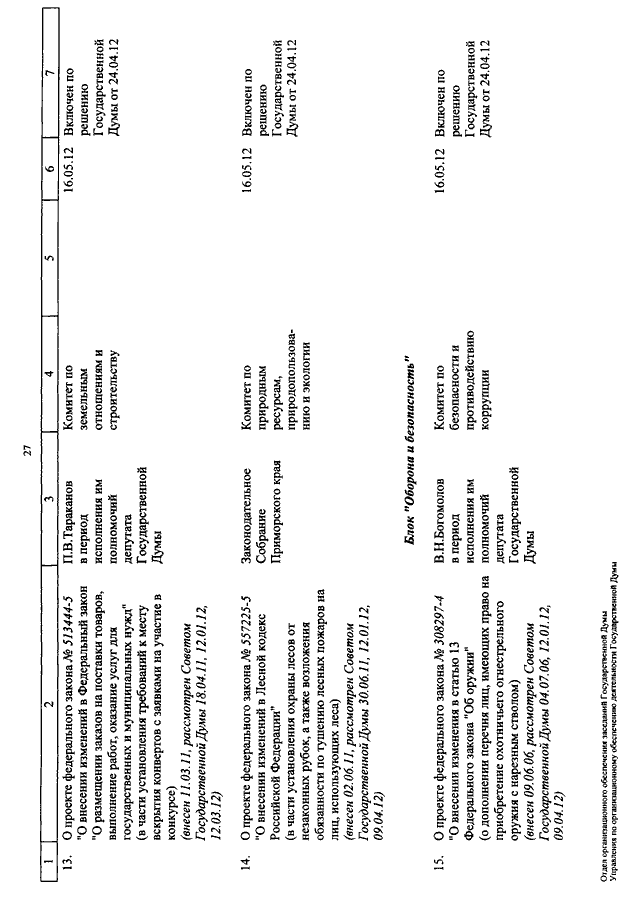 "О КАЛЕНДАРЕ РАССМОТРЕНИЯ ВОПРОСОВ ГОСУДАРСТВЕННОЙ ДУМОЙ С 15 ПО 25 МАЯ 2012 ГОДА"