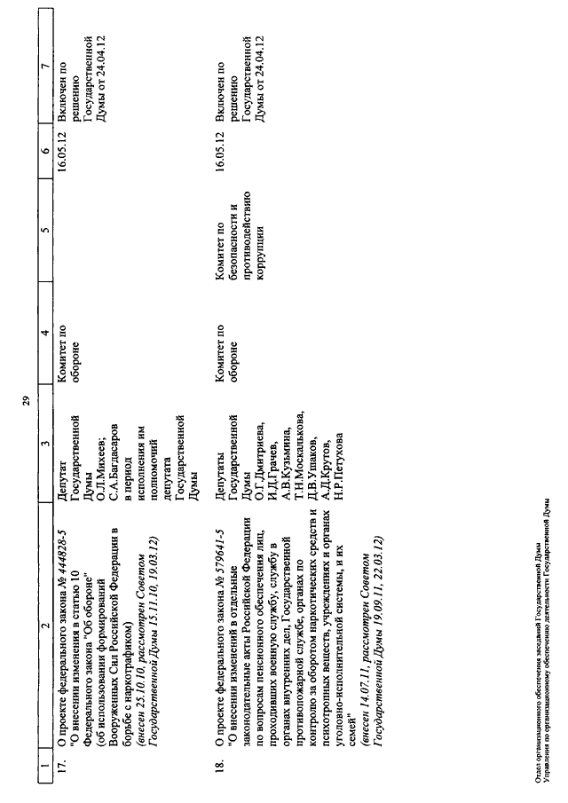 "О КАЛЕНДАРЕ РАССМОТРЕНИЯ ВОПРОСОВ ГОСУДАРСТВЕННОЙ ДУМОЙ С 15 ПО 25 МАЯ 2012 ГОДА"