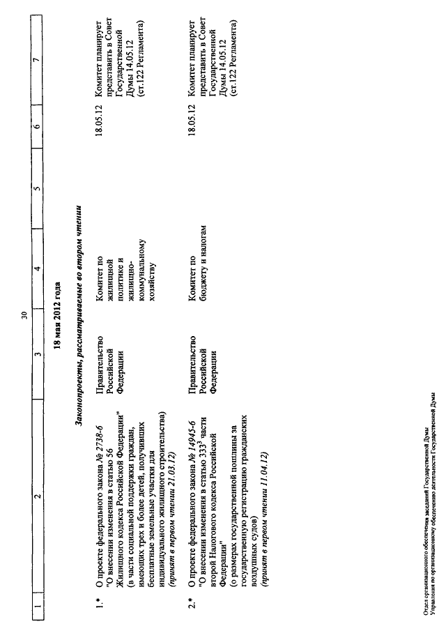 "О КАЛЕНДАРЕ РАССМОТРЕНИЯ ВОПРОСОВ ГОСУДАРСТВЕННОЙ ДУМОЙ С 15 ПО 25 МАЯ 2012 ГОДА"