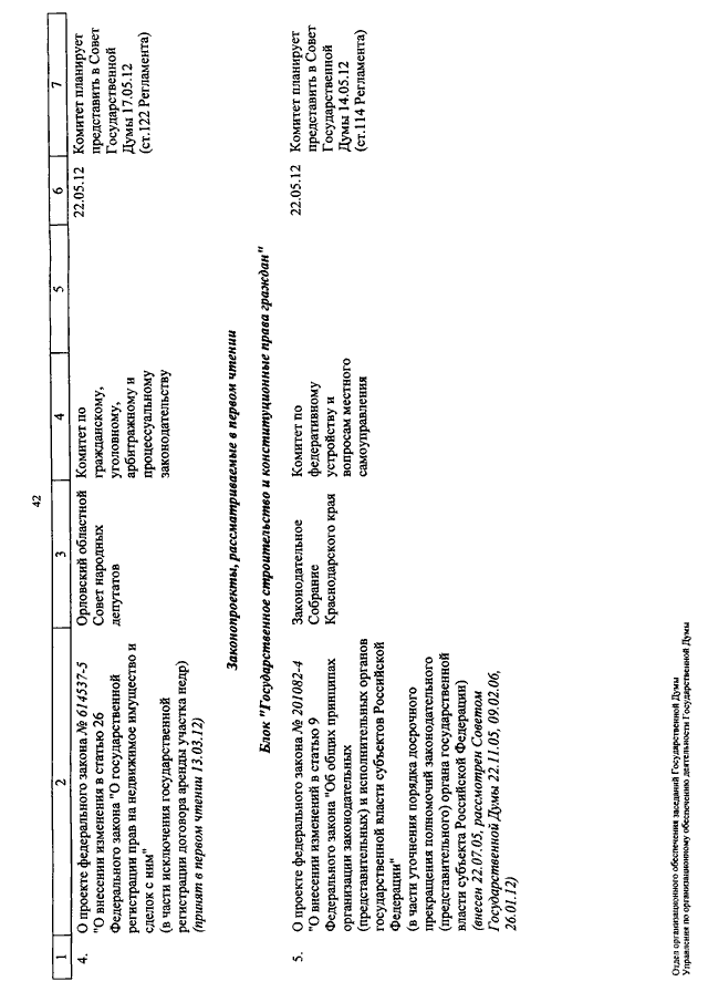 "О КАЛЕНДАРЕ РАССМОТРЕНИЯ ВОПРОСОВ ГОСУДАРСТВЕННОЙ ДУМОЙ С 15 ПО 25 МАЯ 2012 ГОДА"