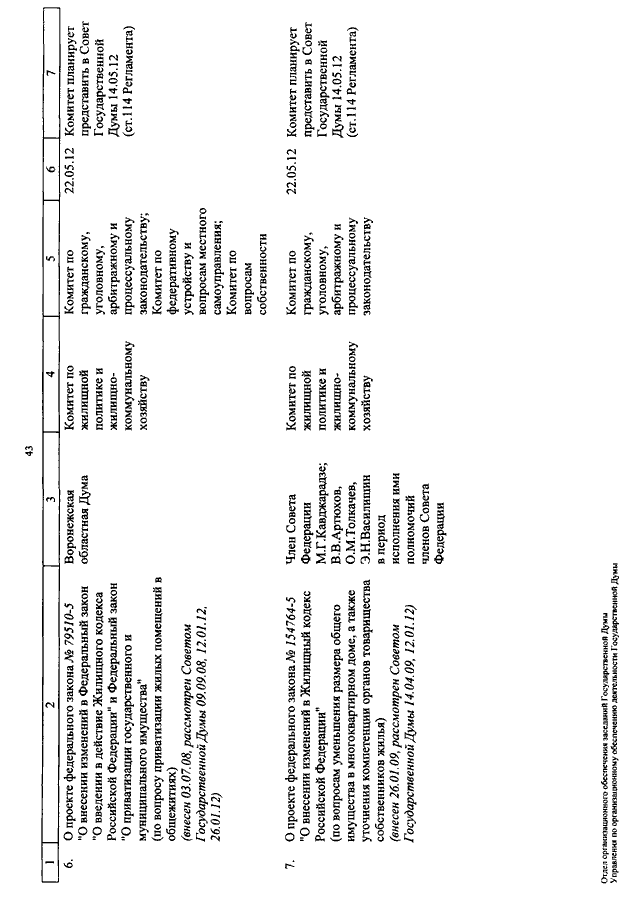 "О КАЛЕНДАРЕ РАССМОТРЕНИЯ ВОПРОСОВ ГОСУДАРСТВЕННОЙ ДУМОЙ С 15 ПО 25 МАЯ 2012 ГОДА"