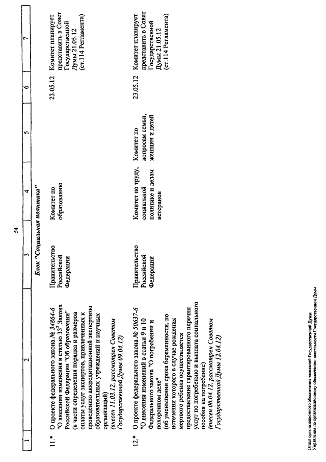 "О КАЛЕНДАРЕ РАССМОТРЕНИЯ ВОПРОСОВ ГОСУДАРСТВЕННОЙ ДУМОЙ С 15 ПО 25 МАЯ 2012 ГОДА"