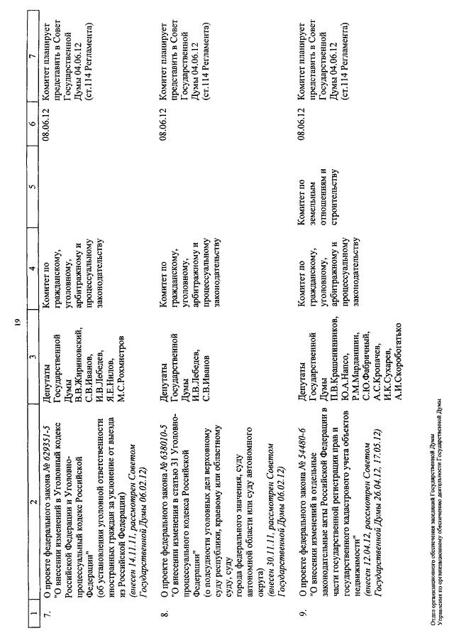 "О КАЛЕНДАРЕ РАССМОТРЕНИЯ ВОПРОСОВ ГОСУДАРСТВЕННОЙ ДУМОЙ С 5 ИЮНЯ ПО 6 ИЮЛЯ 2012 ГОДА"