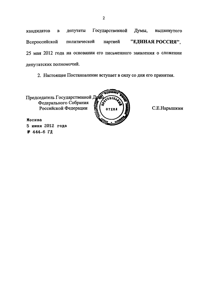 ПОСТАНОВЛЕНИЕ ГД ФС РФ от 05.06.2012 N 444-6 ГД