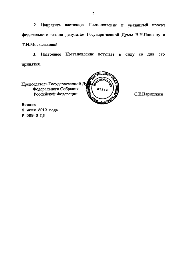 ПОСТАНОВЛЕНИЕ ГД ФС РФ от 08.06.2012 N 509-6 ГД