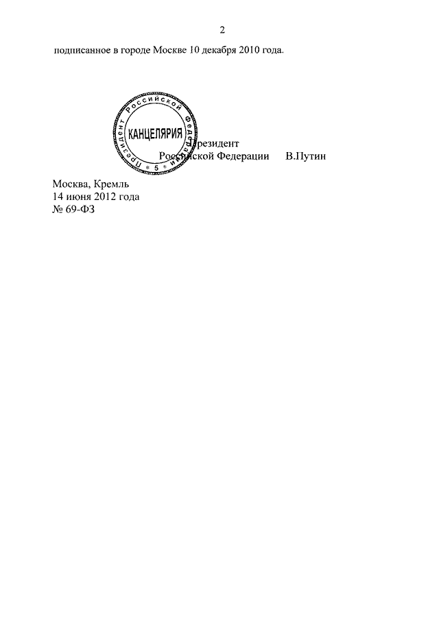 ФЕДЕРАЛЬНЫЙ ЗАКОН от 14.06.2012 N 69-ФЗ