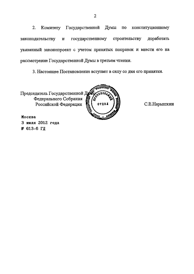 ПОСТАНОВЛЕНИЕ ГД ФС РФ от 03.07.2012 N 613-6 ГД