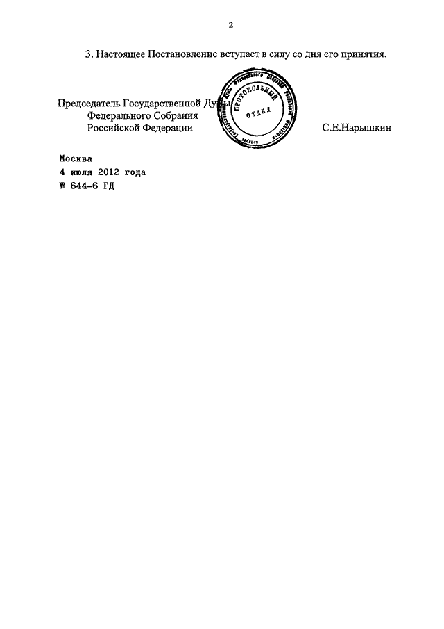 ПОСТАНОВЛЕНИЕ ГД ФС РФ от 04.07.2012 N 644-6 ГД