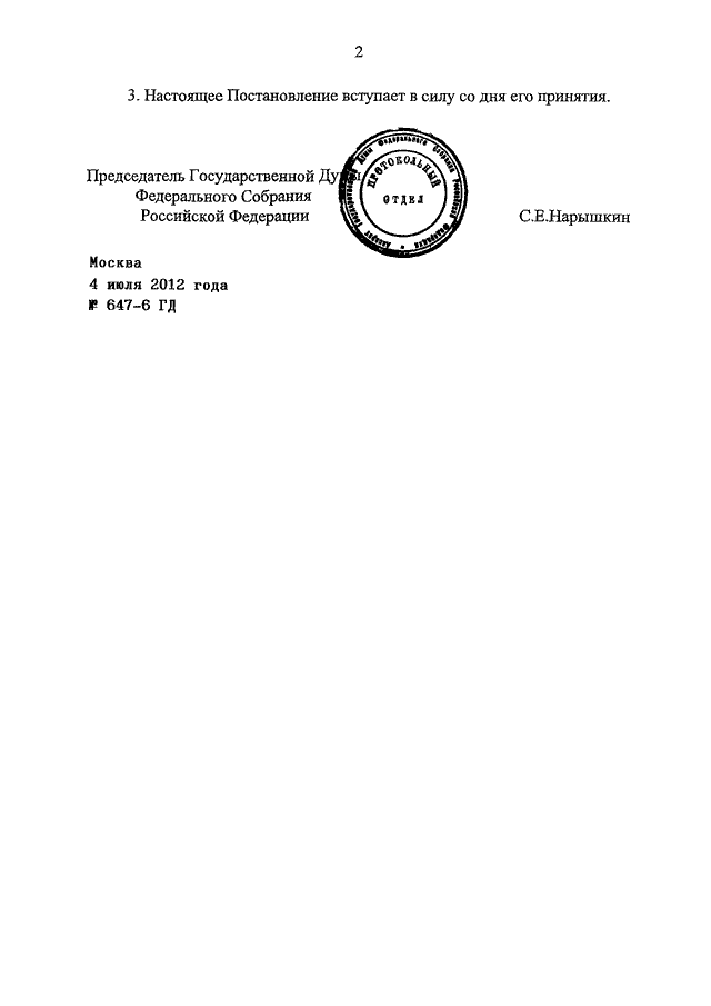 ПОСТАНОВЛЕНИЕ ГД ФС РФ от 04.07.2012 N 647-6 ГД
