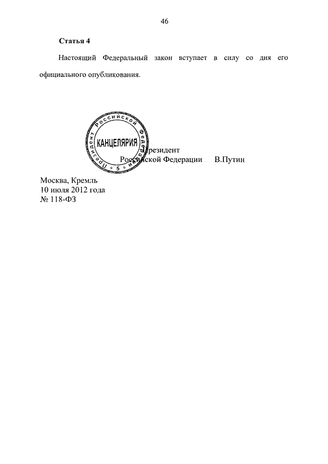 ФЕДЕРАЛЬНЫЙ ЗАКОН от 10.07.2012 N 118-ФЗ