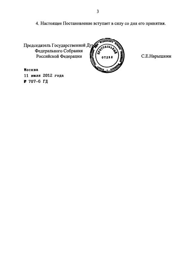 ПОСТАНОВЛЕНИЕ ГД ФС РФ от 11.07.2012 N 707-6 ГД