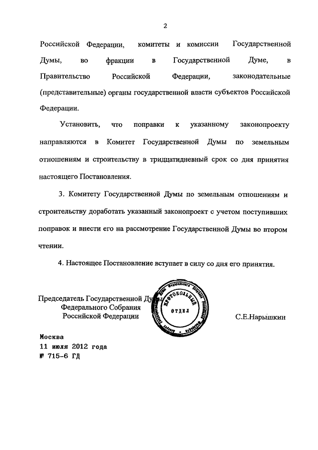 ПОСТАНОВЛЕНИЕ ГД ФС РФ от 11.07.2012 N 715-6 ГД