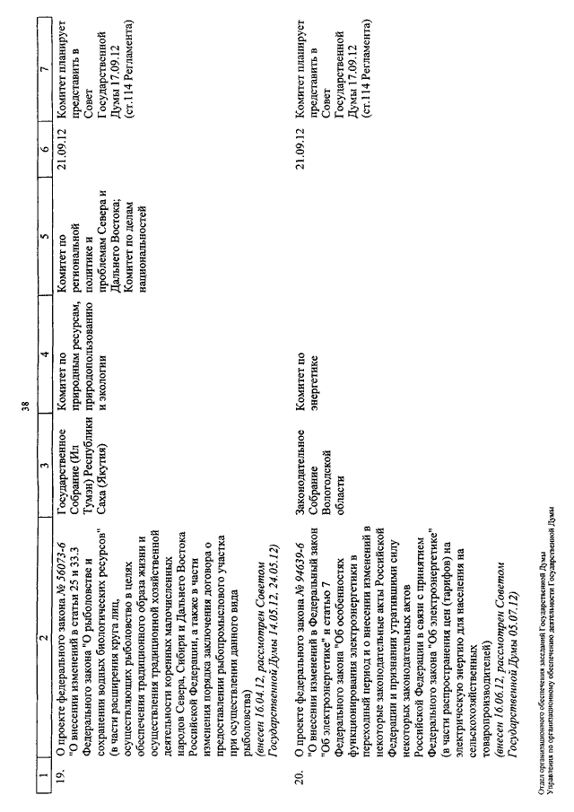 "О КАЛЕНДАРЕ РАССМОТРЕНИЯ ВОПРОСОВ ГОСУДАРСТВЕННОЙ ДУМОЙ С 11 ПО 28 СЕНТЯБРЯ 2012 ГОДА"