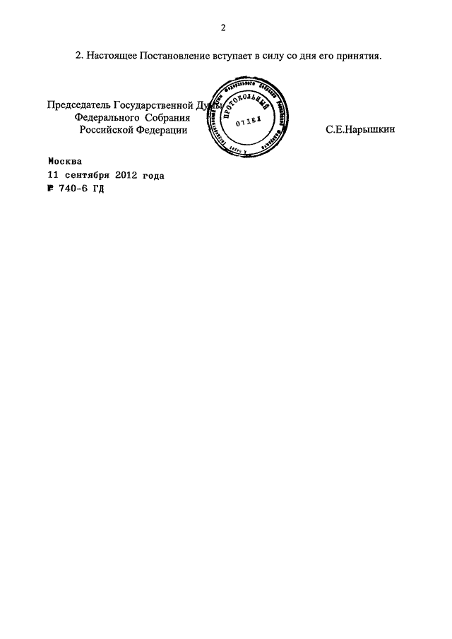 ПОСТАНОВЛЕНИЕ ГД ФС РФ от 11.09.2012 N 740-6 ГД